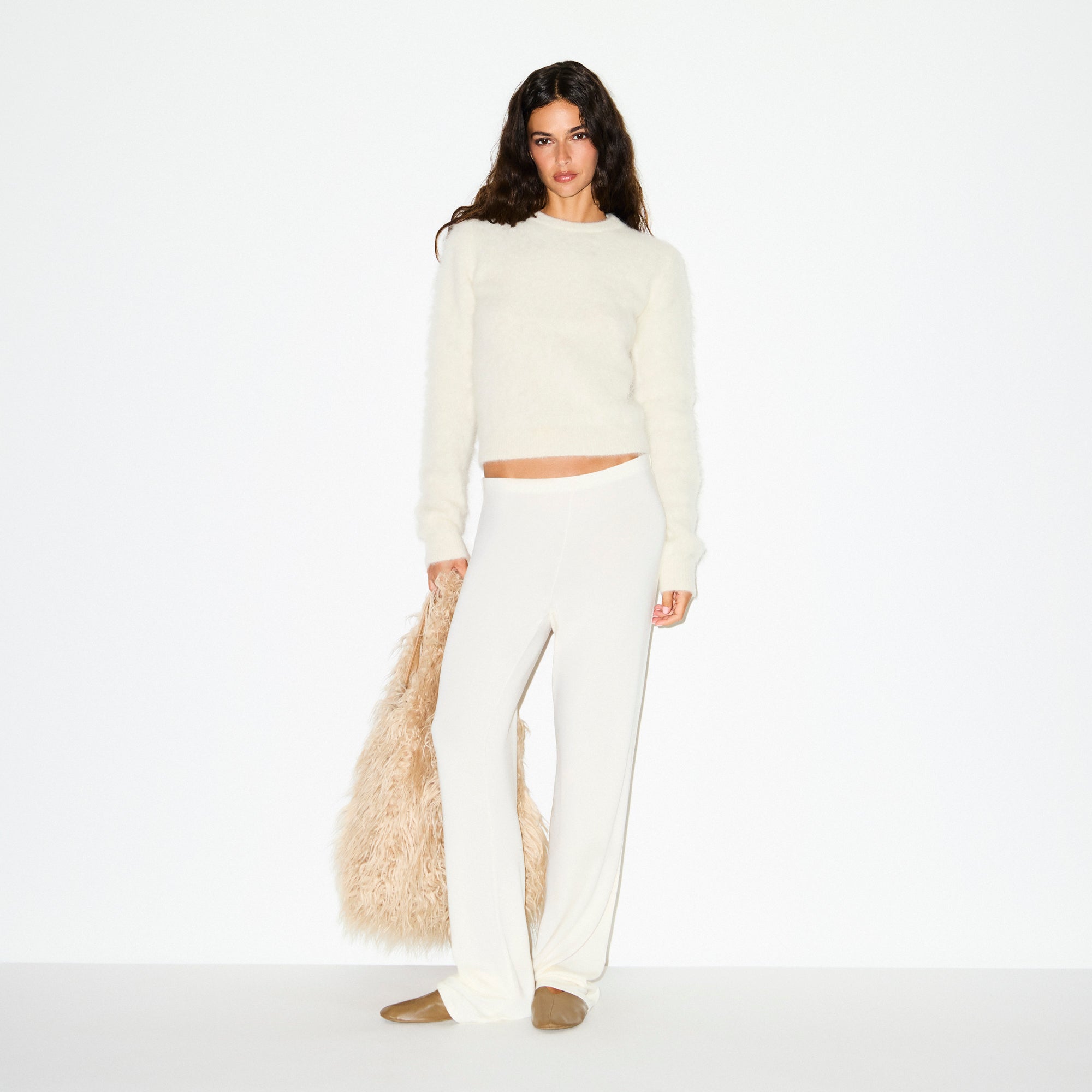 Soft, luxe, and made to layer. Designed in our mid-weight, warm alpaca blend, this long sleeve top features a crew neckline and a brushed, elevated look. Finished with ribbed details at the neckline, cuffs, and hem. Fits true to size.