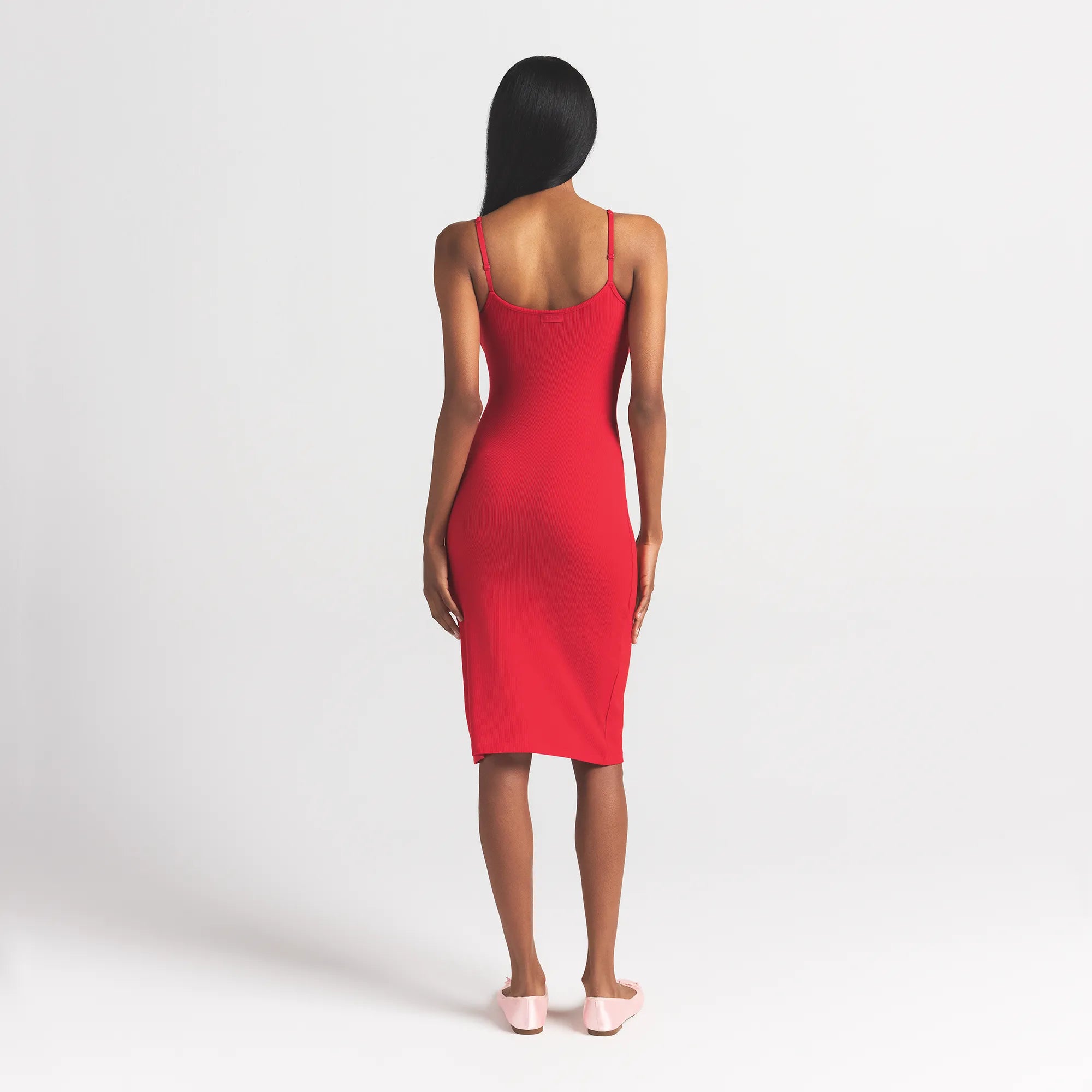 Our viral dress, now in a midi length. Designed in our signature modal rib fabric, this ultra-soft dress accentuates your silhouette with a curve-hugging fit. Features a flattering straight neckline, adjustable straps, and SKIMS logo detail at the center back neck. Fits true to size.