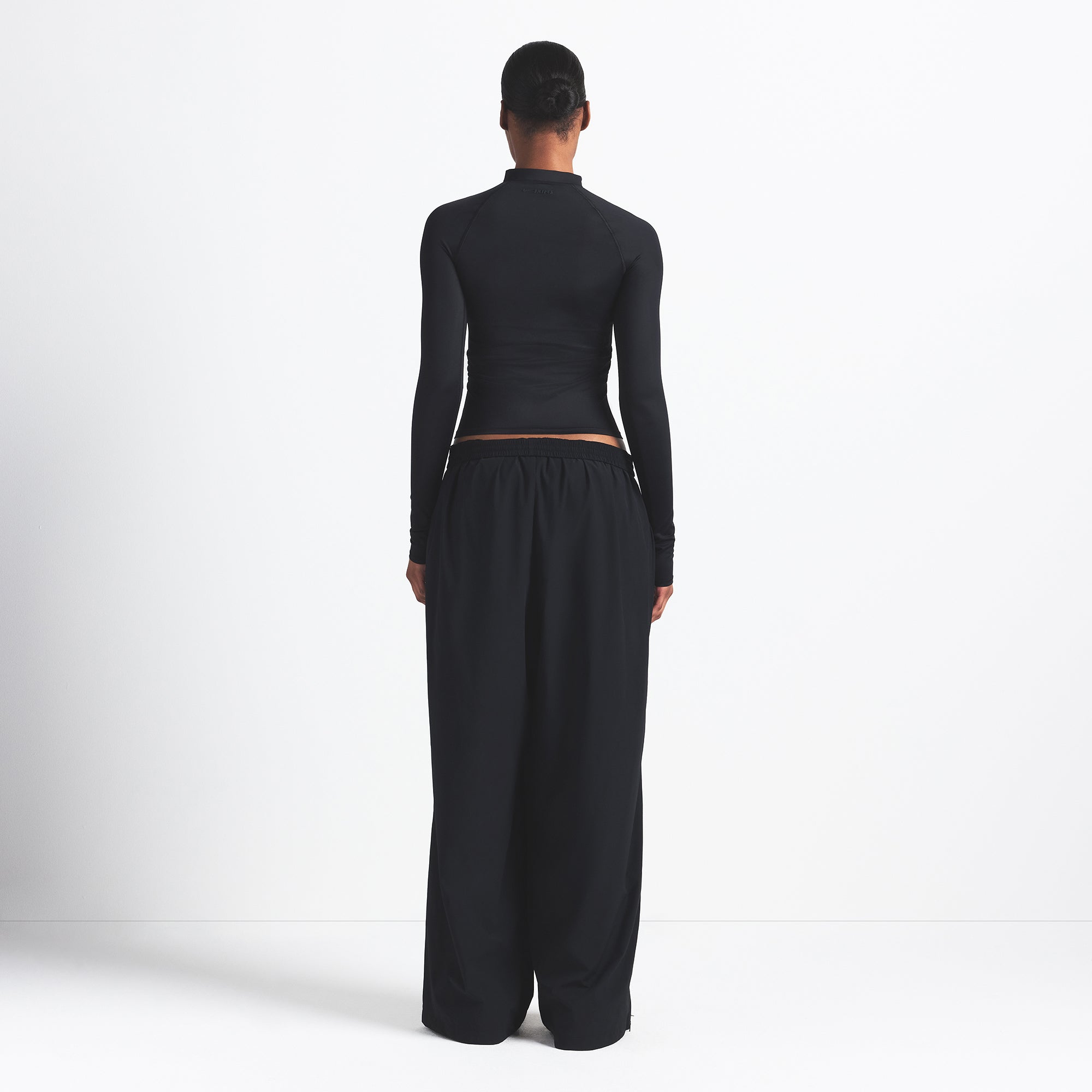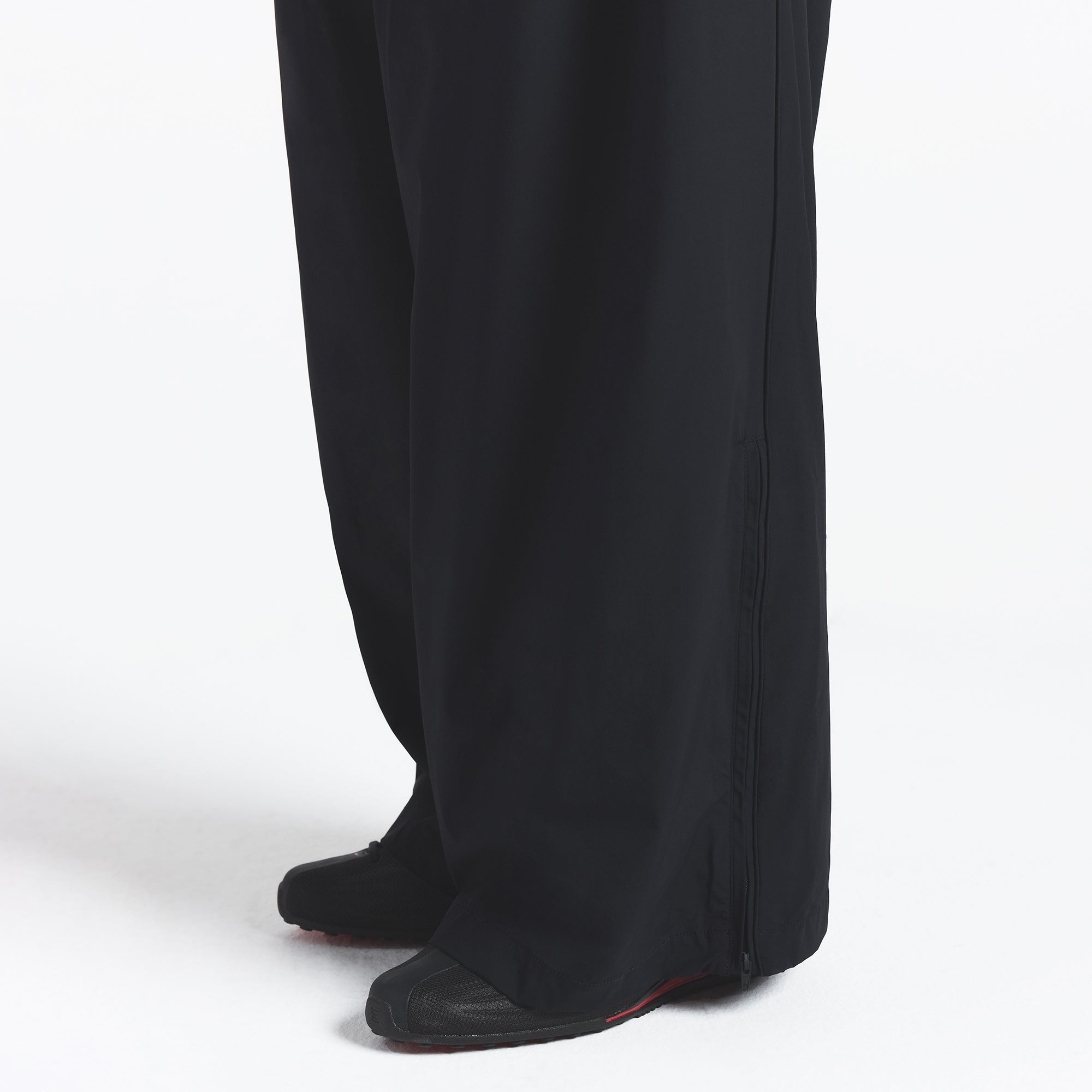 Your go-to layer to and from the gym. This oversized track pant is designed in our lightweight Woven Nylon fabric with an elastic waistband, welt zipper pockets, and interior adjustable drawstring. Complete with a side zip detail at the leg opening.