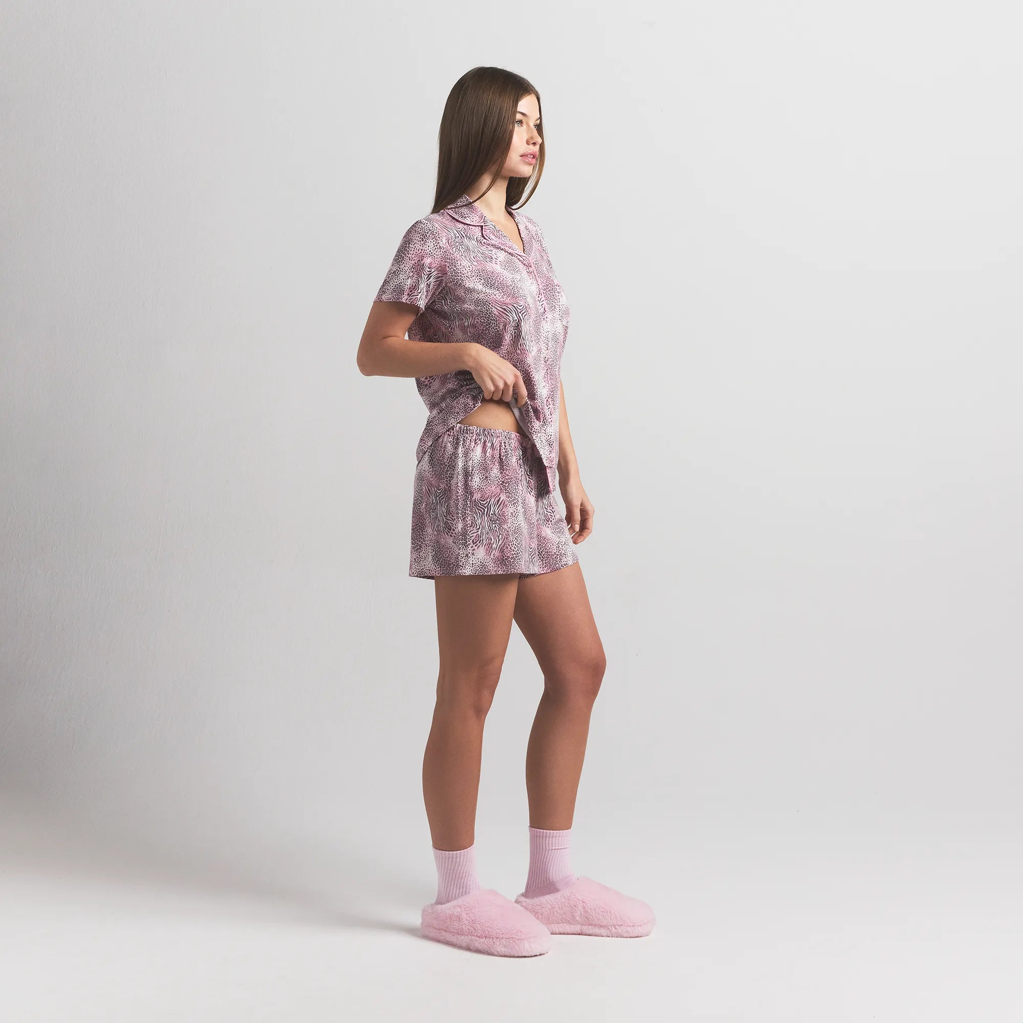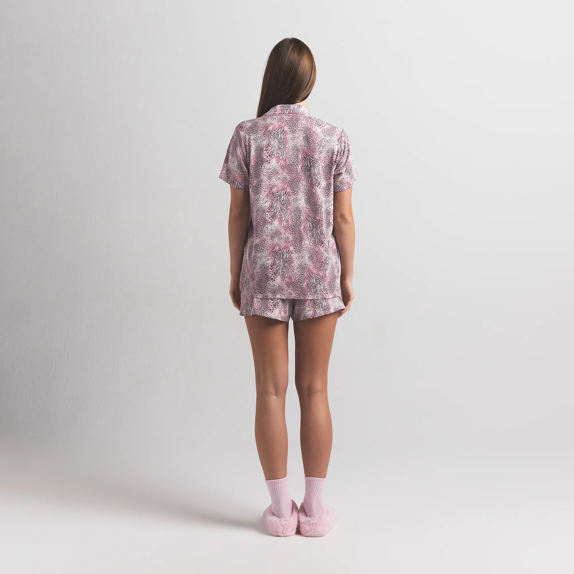 A match made in heaven. This incredibly smooth two-piece set features a classic button-up top with short sleeves, a chest pocket, and contrast piping details. The relaxed shorts include an adjustable interior drawstring for an ultra comfortable fit. Fits true to size.