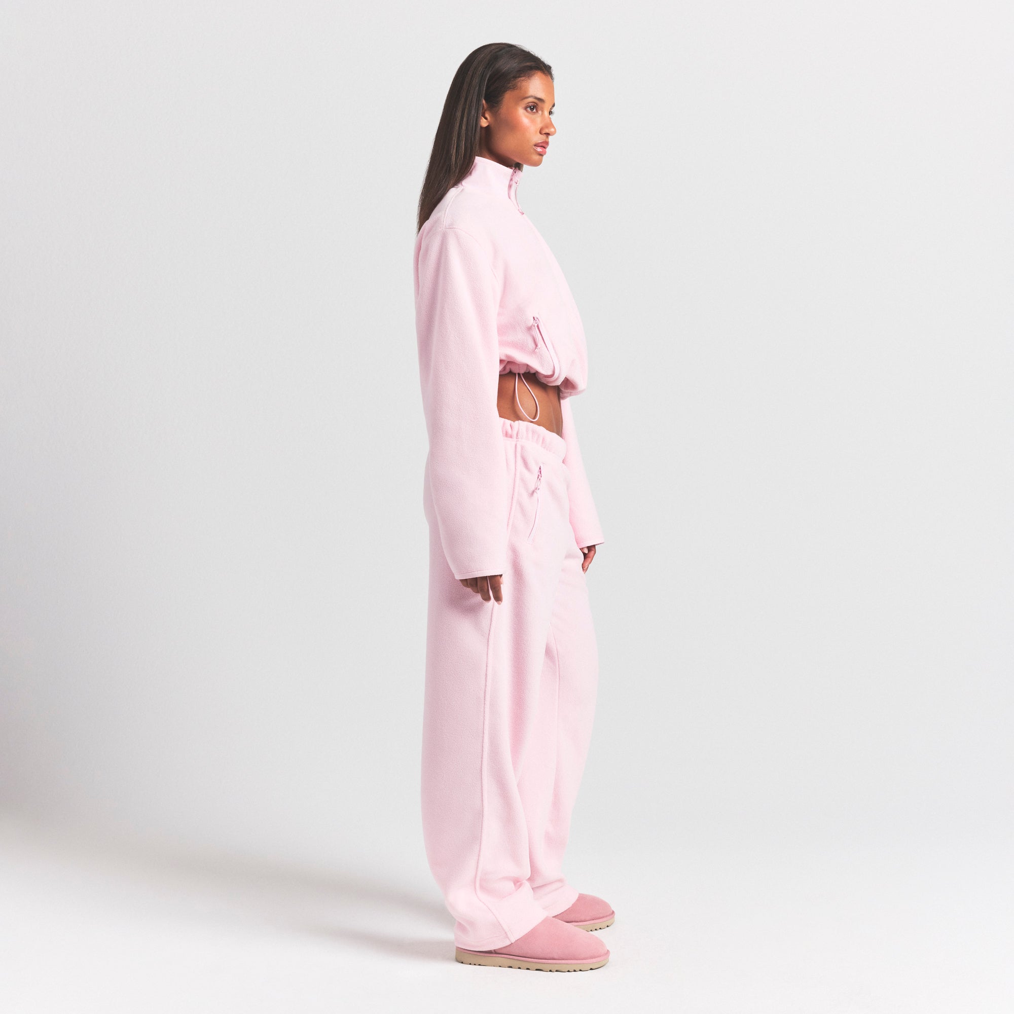 Warm, fuzzy, and essential. These ultra-plush fleece pants have an adjustable bungee waist and a straight-leg silhouette that’s made for effortless everyday styling. A silicone logo patch and zip pockets add to their sporty appeal.
